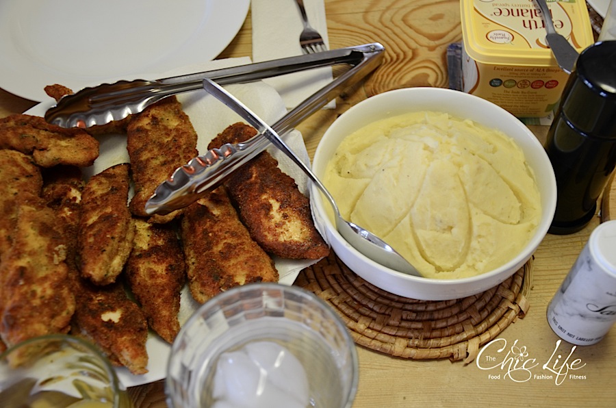 For lunch, we had breaded chicken, beans from the garden, and mashed potatoes with vegan gravy.